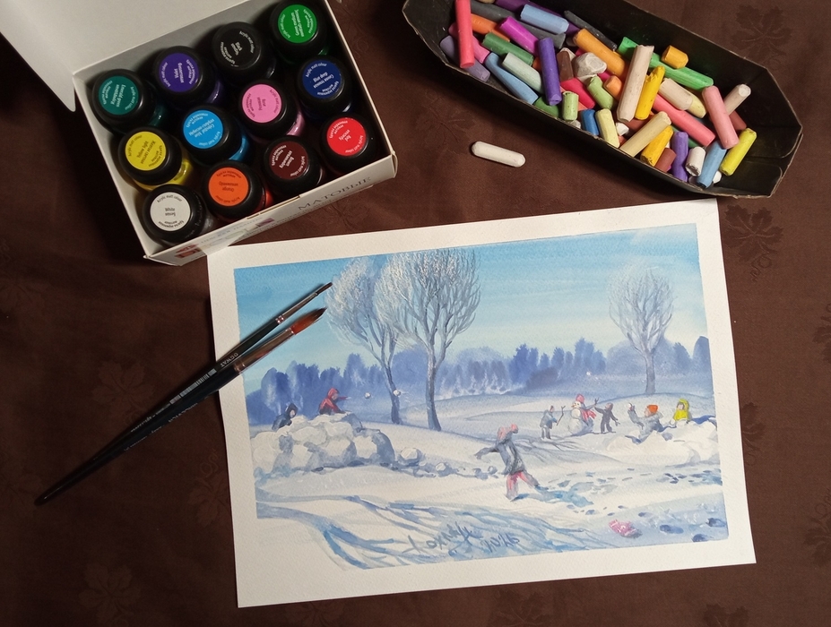 Мастер-класс «Снежные поля, зимние забавы. Смешанная техника»